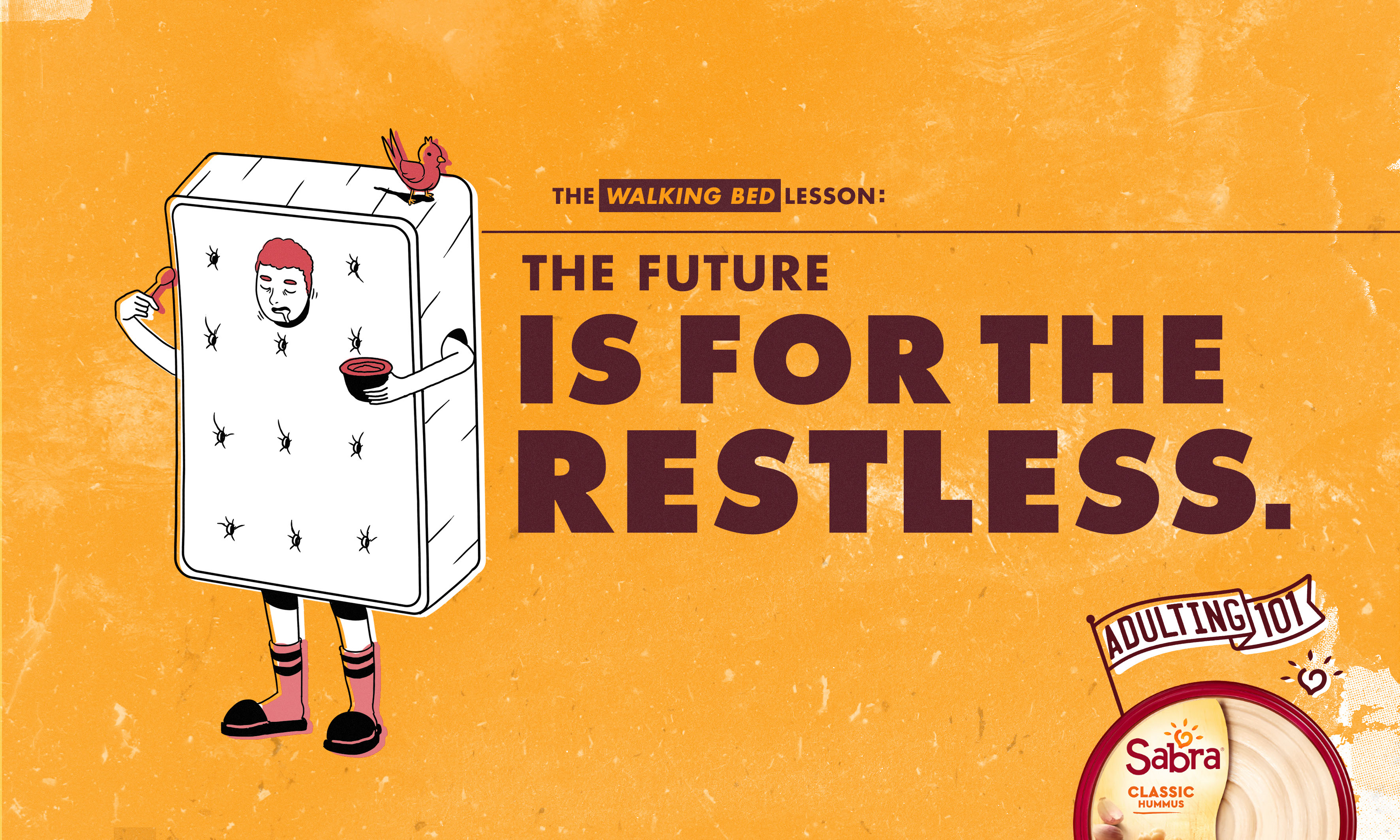 Sabra wanted to create small OOH ads that made college students feel backed by hummus. Why? Because in student life, where money’s tight and you’re running from class to class, all you really need is some hummus and tortillas. Or bread. Or chips. Or veggies. Or… yeah, you get the idea.